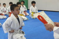 本部道場(金沢中央支部)昇級者に認定状と帯を渡しました。